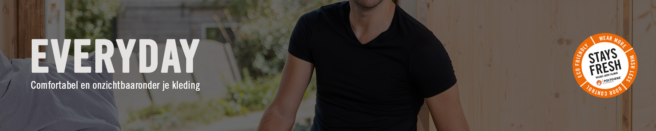 Alle ondershirts zijn voorzien van een extra lang achterpand. Geen opkruipende T-shirts meer maar T-shirts die goed in je broek blijven zitten. Ook na het wassen blijven de T-shirts extra lang.