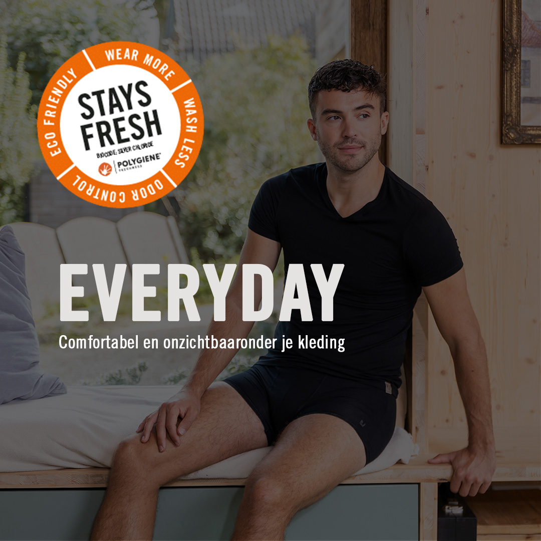 RJ Everyday is in Nederland ontwikkeld en gemaakt van compact Amerikaans katoen. Deze zachte, sterke katoensoort is kleurbestendig, pilt niet zoals andere katoen kwaliteiten en staat voor uitstekend comfort. Gecombineerd met de fijne afwerking en details is een perfect draagcomfort voor elke dag gegarandeerd.