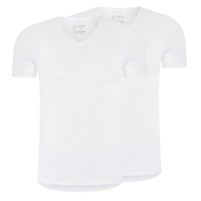 Het RJ Good Life Athens 2‑pack Heren T‑shirt V‑hals in wit is de ideale keuze voor mannen die op zoek zijn naar stijlvol en ademend ondergoed. Gemaakt van TENCEL™ lyocell en elastaan, biedt dit shirt een zijdezacht draagcomfort en uitstekende vochtregulatie – perfect voor warme zomerdagen. De diepe V‑hals en witte kleur zorgen ervoor dat het shirt onzichtbaar blijft onder lichte of witte bovenkleding.