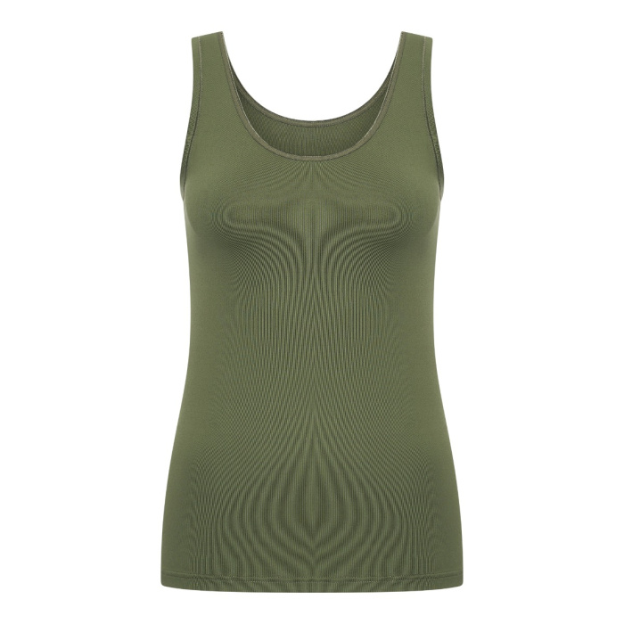 Dit getailleerde hemd in donkergroen van RJ Bodywear biedt een comfortabele en moderne pasvorm. Gemaakt van zachte polyamide microvezel die ademend en elastisch is, blijft het hemd was na was mooi van kleur. Het is aan beide kanten te dragen, waardoor je kunt kiezen tussen een lage of hoge hals. Door de verbeterde pasvorm kun je je normale confectiemaat bestellen. Bovendien zijn de armsgaten nu zonder satijnbiesje voor een strakkere afwerking.