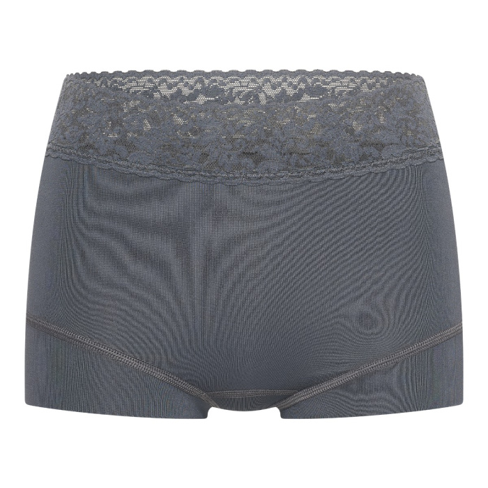 Deze RJ Pure Color dames short in de kleur donkergrijs is gemaakt van zachte, ademende microfiber. Dankzij de korte pijpjes en het fijne kant aan de bovenkant zit deze short supercomfortabel en zie je geen naden onder je kleding. Perfect voor elke dag én onder een strakke outfit.