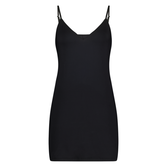 Dit zwarte RJ Pure Color dames onderjurkje met V-hals combineert elegantie met ultiem draagcomfort. Of je het nu draagt als onderjurk, licht nachthemd of stijlvol strandjurkje, dit veelzijdige kledingstuk sluit naadloos aan op jouw lichaam en levensstijl.