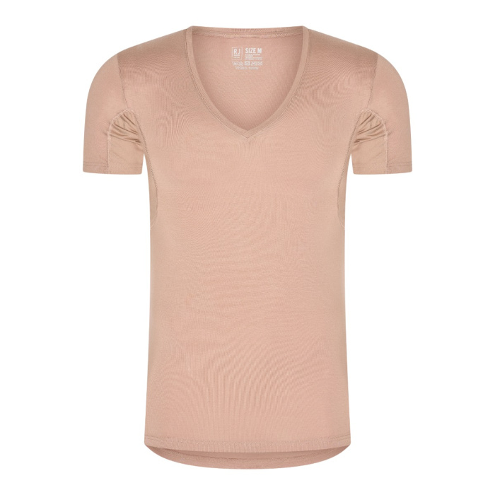 Het RJ Sweatproof Copenhagen T-shirt met diepe V-hals in de kleur 'Natural' biedt een natuurlijke en effectieve oplossing voor mannen die last hebben van overmatig zweten. Met strategisch geplaatste materialen zorgt dit T-shirt voor een fris en zelfverzekerd gevoel gedurende de dag.